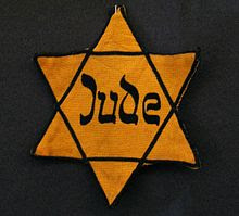 The yellow badge that Jews were forced to ware in Nazi Germany as a badge of Shame,